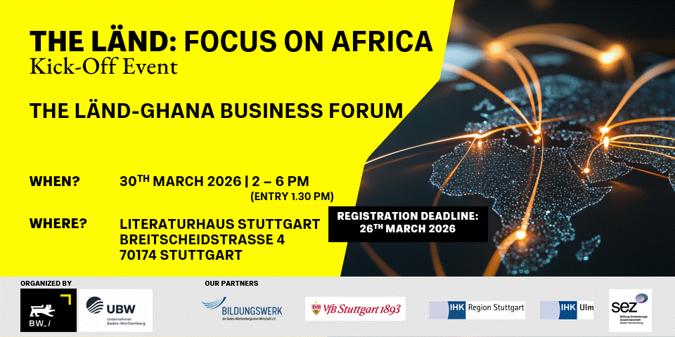 The event is aimed at companies and institutions from Baden-Württemberg with an interest in the Ghanaian market and in business opportunities in Ghana.